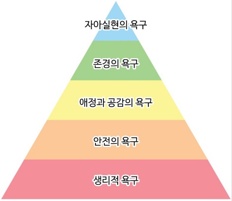 인간은 자아실현을 위해 맨 밑에 있는 생리적욕구부터 안전의욕구, 사회적욕구, 존경의욕구,